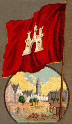 - card cigarette trading vintage antique collectable trade card tobacco City Flags flag city Allen Ginter banner standard Hamburg German Germany