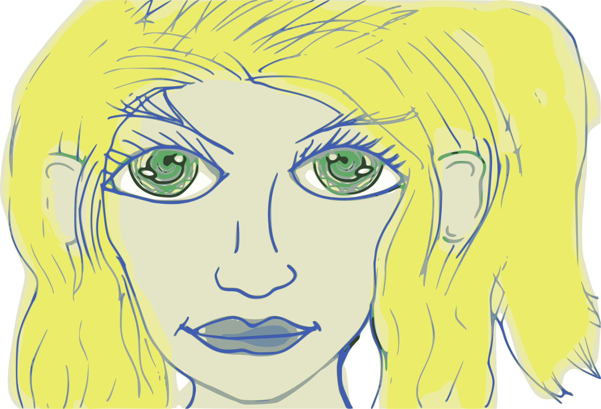 - anime blonde Comic characters drawing eye face female girl green head kawaii manga woman
