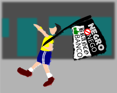 A white man walking against civil rights for black people.