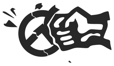 A Fist destroying the symbol of identitarianism.