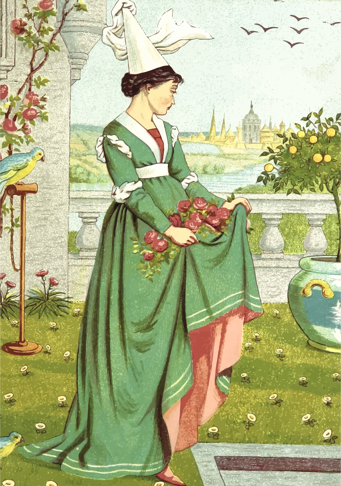 - floral flower garden girl lady picking Reflective of the Victorian Edwardian & Georgian Penman Ship Era scene Semi-Realistic People woman