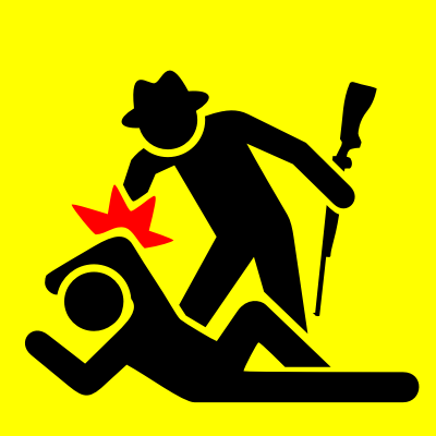 Icon that shows how a hunter hits an activist. Brutality against animals often predates brutality against humans.