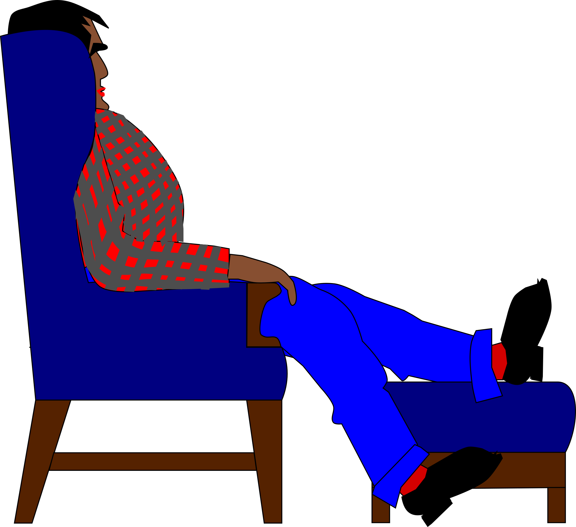 A man seated in an easychair with one leg on a footstool