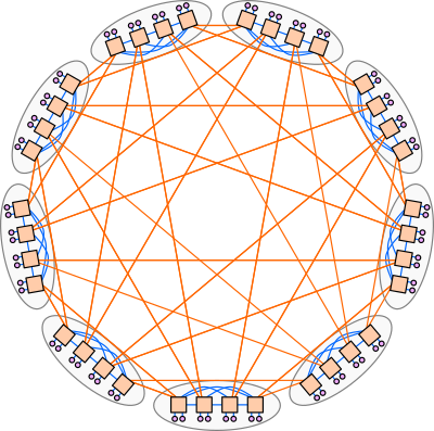 The dragonfly data-center network topology (Technology-Driven, Highly-Scalable Dragonfly Topology): https://dl.acm.org/citation.cfm?id=1382129