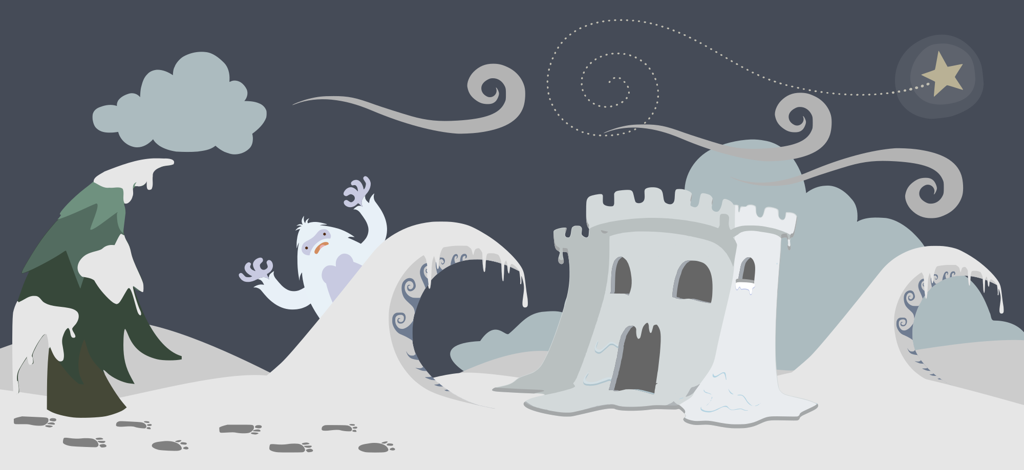 - abominable snowman background Christmas footprints Glitch Non-Human Beings scene snow castle snow fort winter yeti