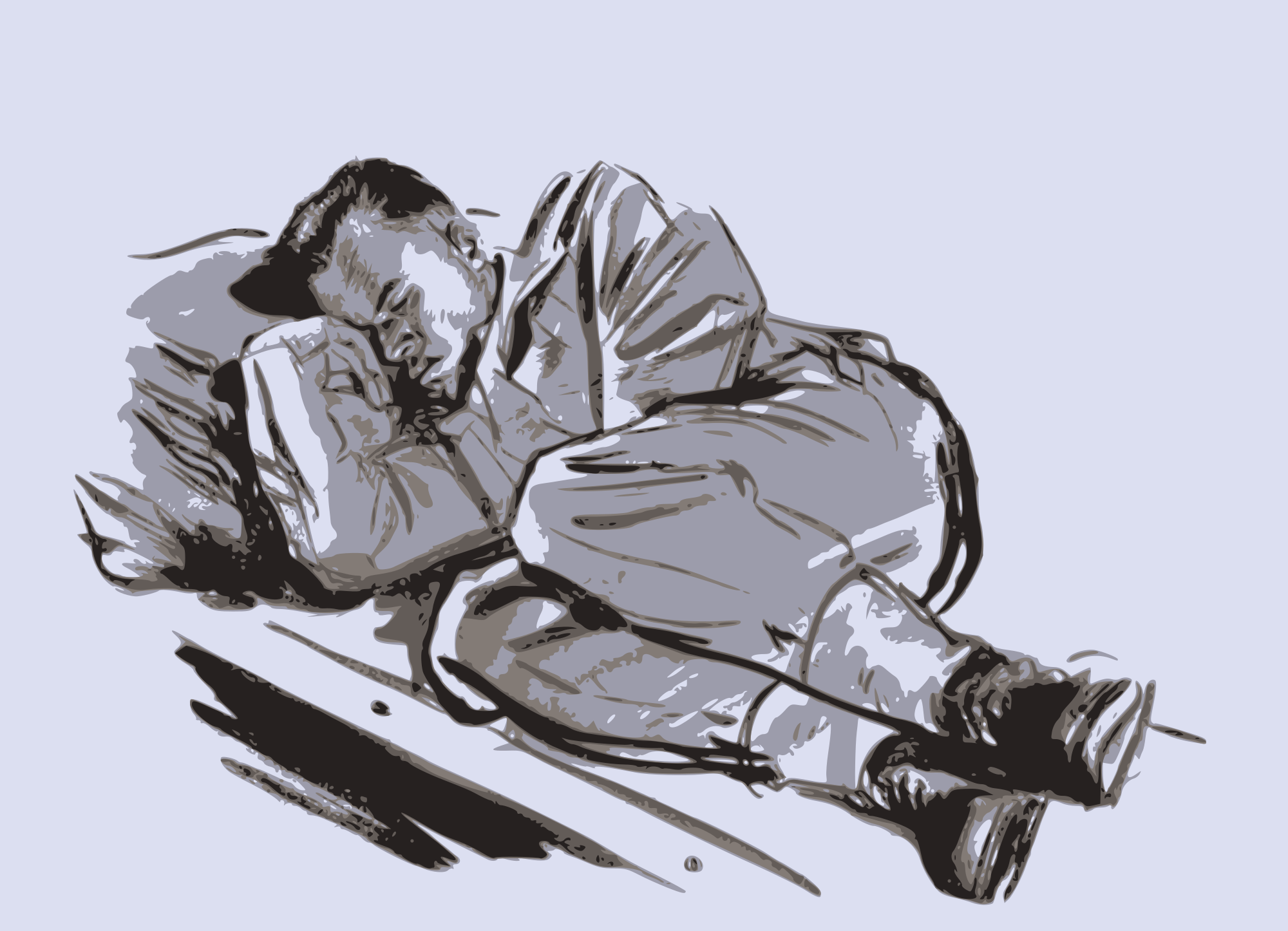 This is a public domain british sketch of a sleeping solider. (I changed the colour scheme while synthesizing it.)
