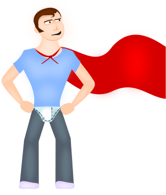 A man with a cape and his underwear above his pants..