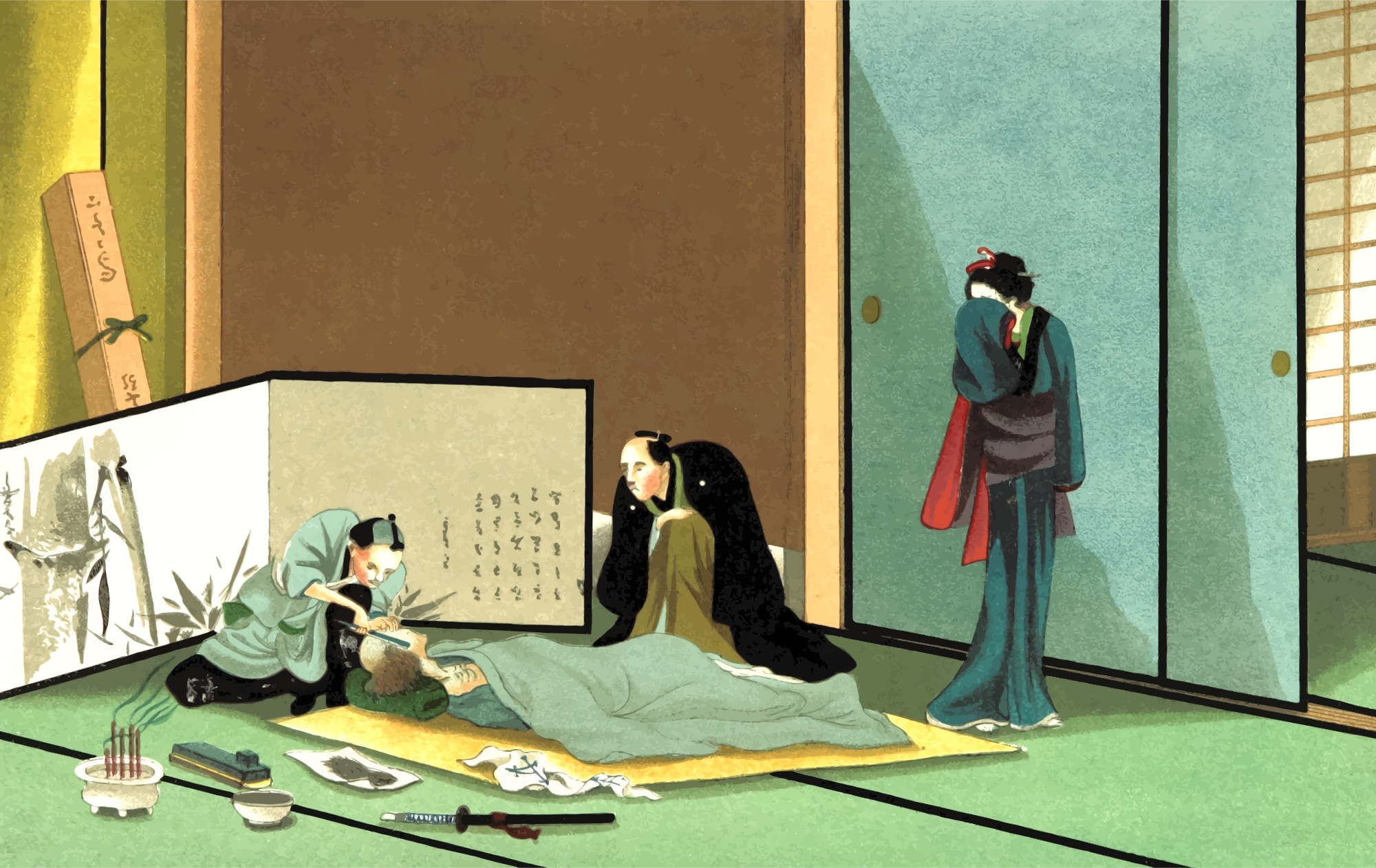 - chromolithograph chromolithography dead death funeral Japan Japanese last offices print ritual scene Semi-Realistic People