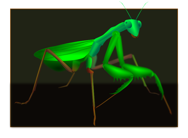 Green mantis on a dark background.