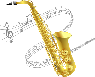 A saxophone with b&w music background