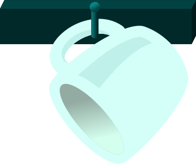 Single coffee cup hanging from hook.