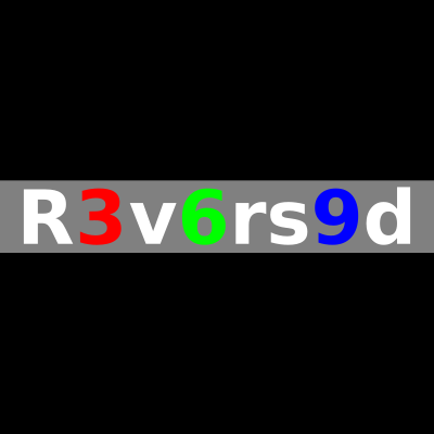 The lettering "R3v6rs9d" in a smil animation with spinning numerals.
