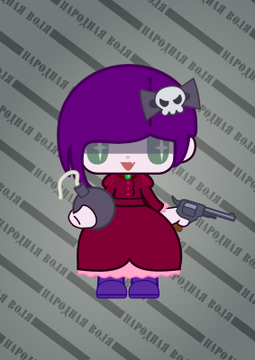 A chibi version of a XIX century russian terrorist, strongly inspired by the visual style of @uriuriy
