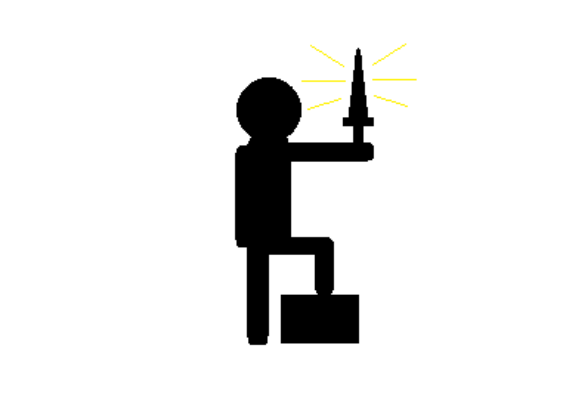 A guy holding a sword with glorious light and standing on a box... nothing more