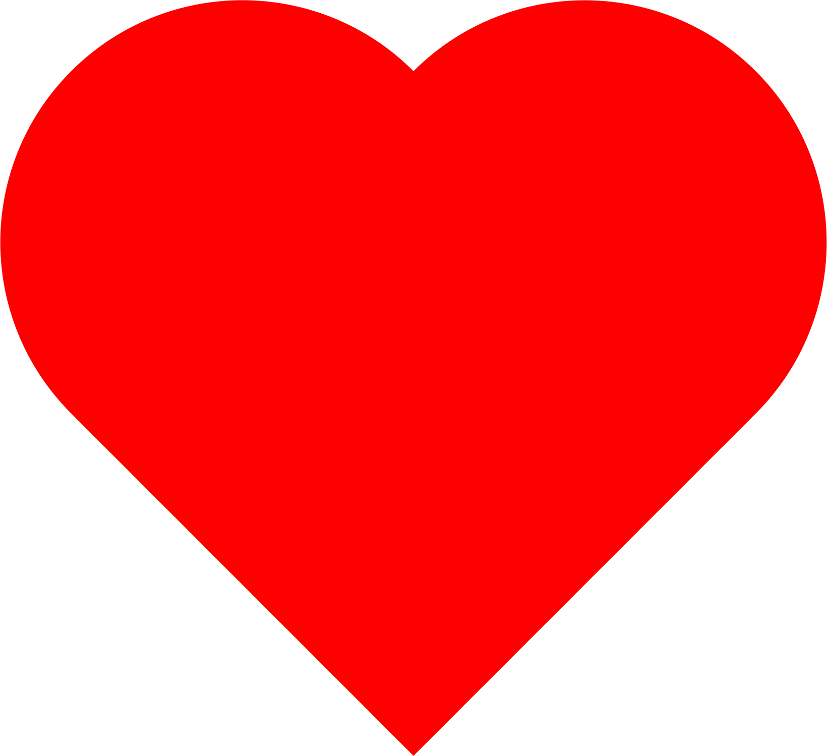 Simple heart shape. Based on a perfect square, and two perfect half circles of the same diameter. Single path, small file size, under 200 bytes.