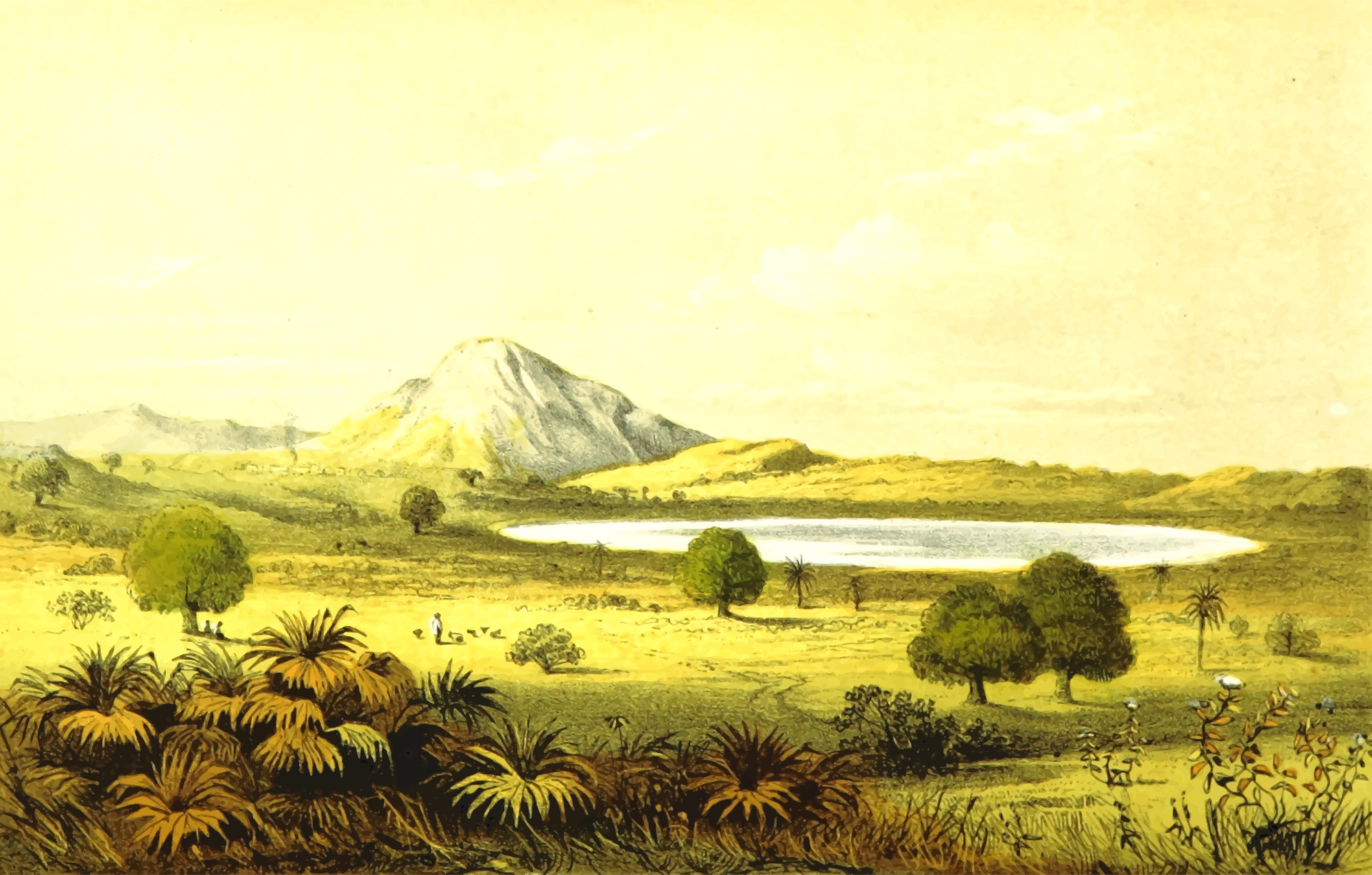 From a drawing in 'Travels and Discoveries in North and Central Africa: being a journal of an expedition undertaken under the auspices of H.B.M.'s Government, in the years 1849-55', Heinrich Barth, 1857. This 5-volume set had around 50 colour plates featuring African scenes. I mean to upload vector versions of all of them over the next few days.