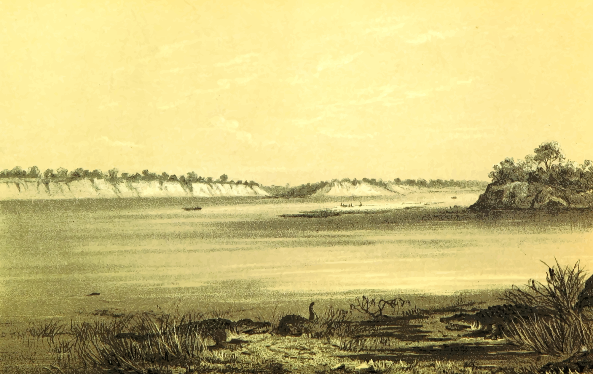 From a drawing in 'Travels and Discoveries in North and Central Africa: being a journal of an expedition undertaken under the auspices of H.B.M.'s Government, in the years 1849-55', Heinrich Barth, 1857. This 5-volume set had around 50 colour plates featuring African scenes. I mean to upload vector versions of all of them over the next few days.