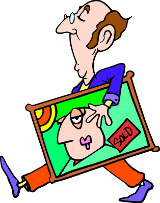 - art bought Comic characters eyeglasses male man masterpiece painting people - cartoon - cute purchased sold walking