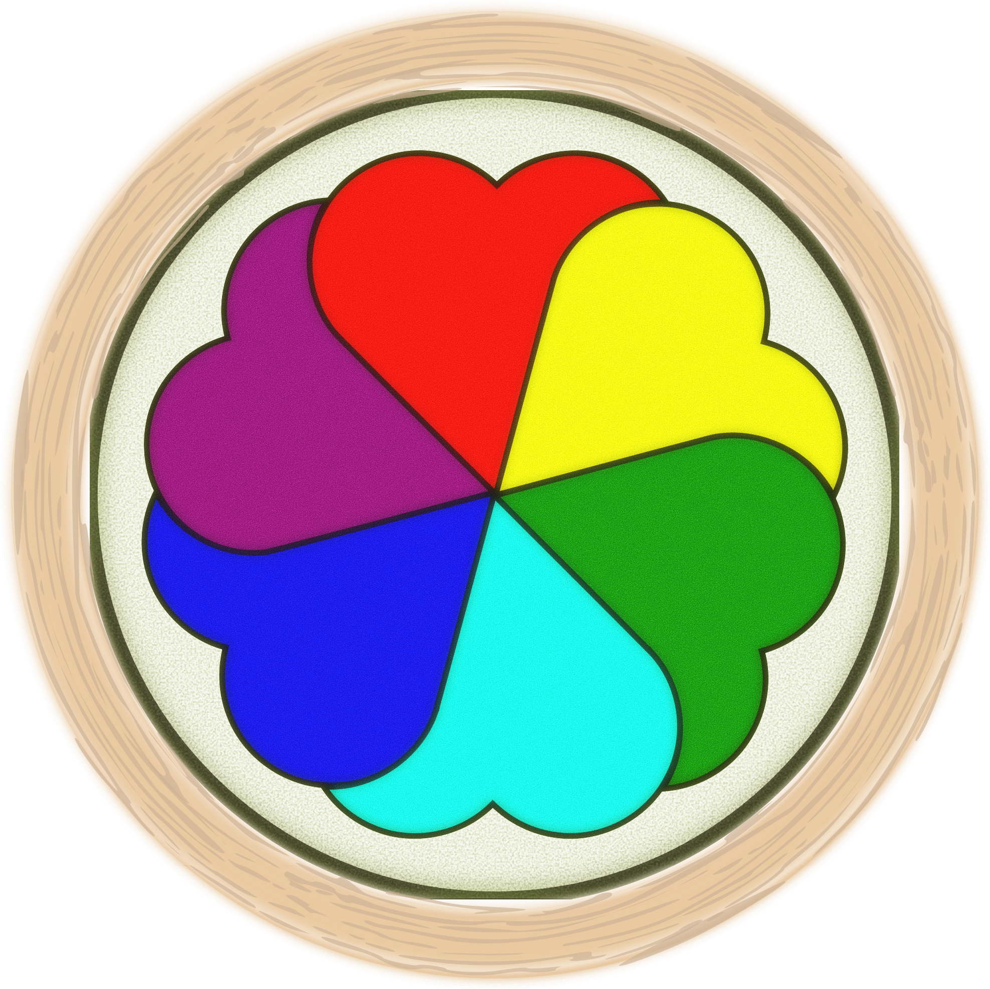 Round stained glass window with hearts and wood frame--The hearts graphic is from a upload by Manuela.