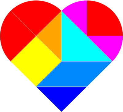 A heart made of tangram pieces