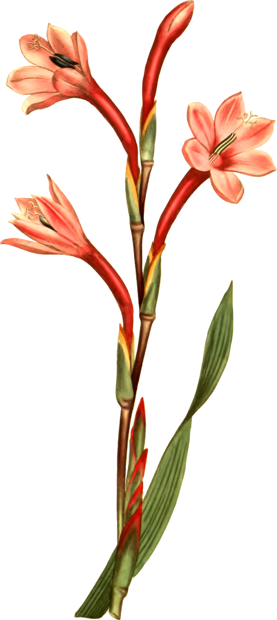 - antique botanical FIORI floral flower lake-coloured leaf leafy leaves magazine petal plant vintage watsonia