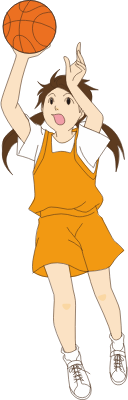 - ball basketball class Comic characters education female game girl gym initial sh jump physical school shoot student woman young player sport sports PE