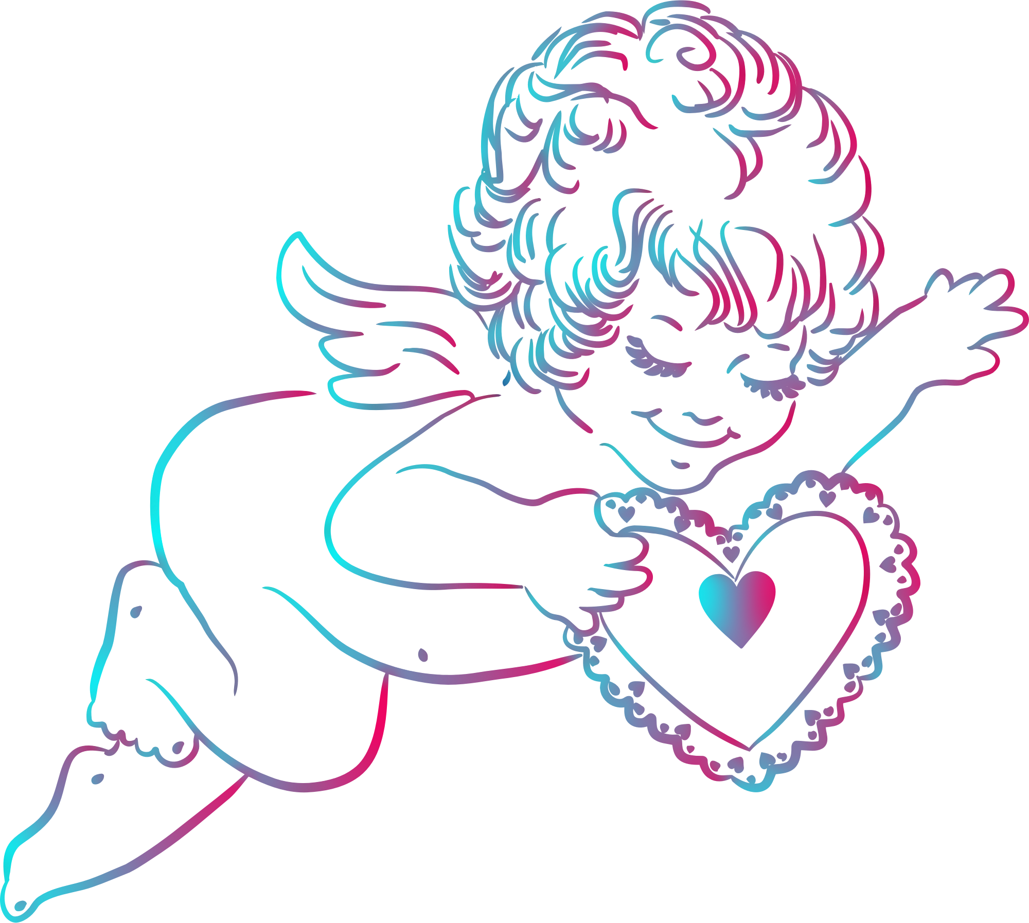 Angel With Heart Line Art