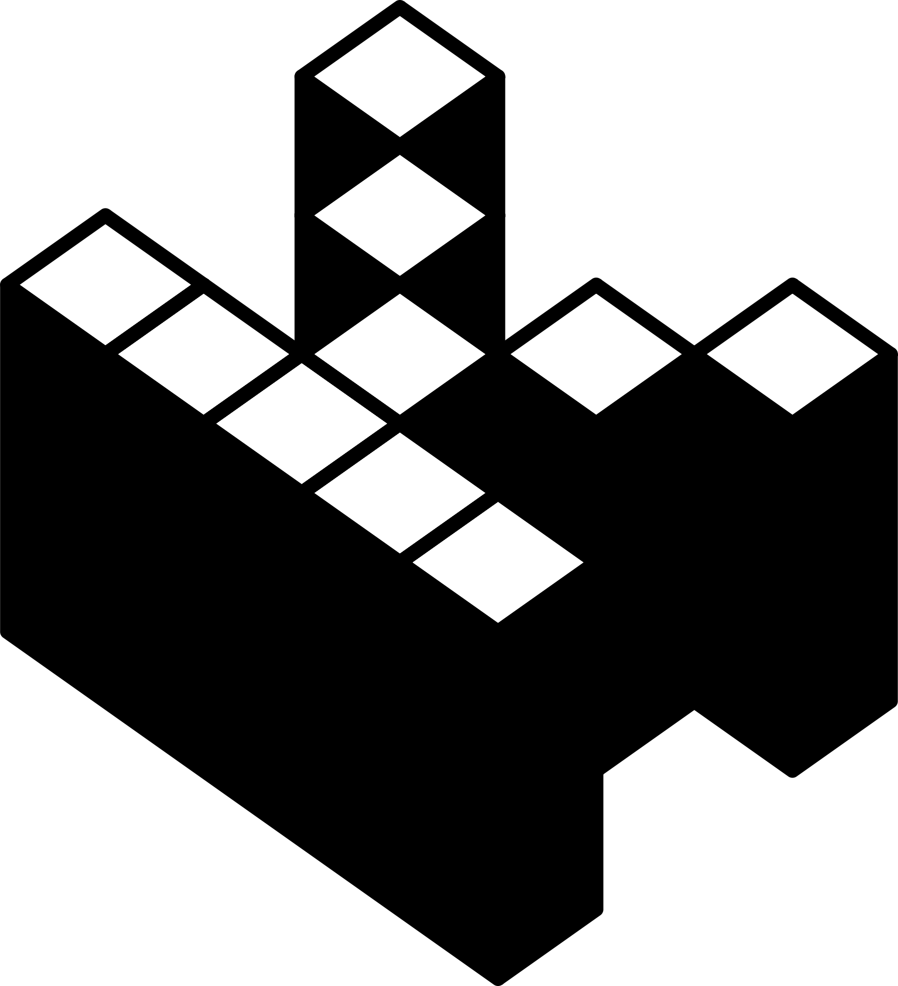 Logo created from scratch with integer coordinates, sqrt(2)/2 approximated by 29/41. The SVG consists of two paths (each of them with several subpaths), one for the rhombi and one for the black shadow. This logo symbolizes a 'K'