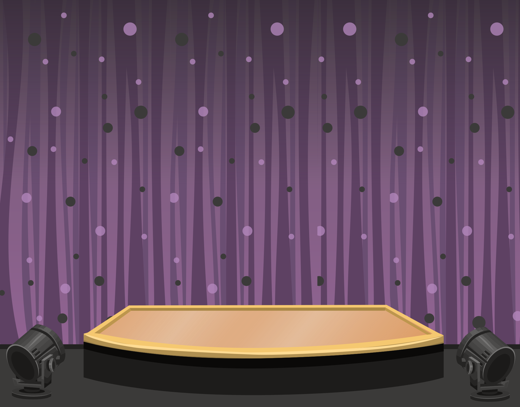 A small stage, with stage lights and a violet curtain. It's a remix made up of artworks from glitchthegame.com