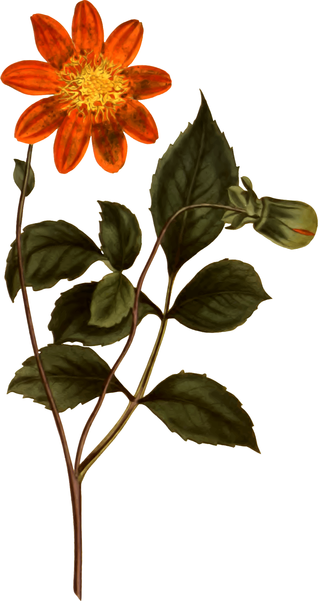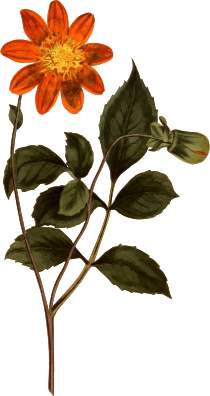 - antique botanical dahlia FIORI floral flower flowered leaf leafy leaves magazine petal plant scarlet vintage