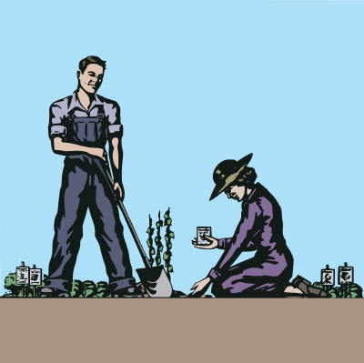 couple Favorites food garden grow growing man plant plants remix+297493 retro seeds Semi-Realistic People shovel spade vegetables veggies woman