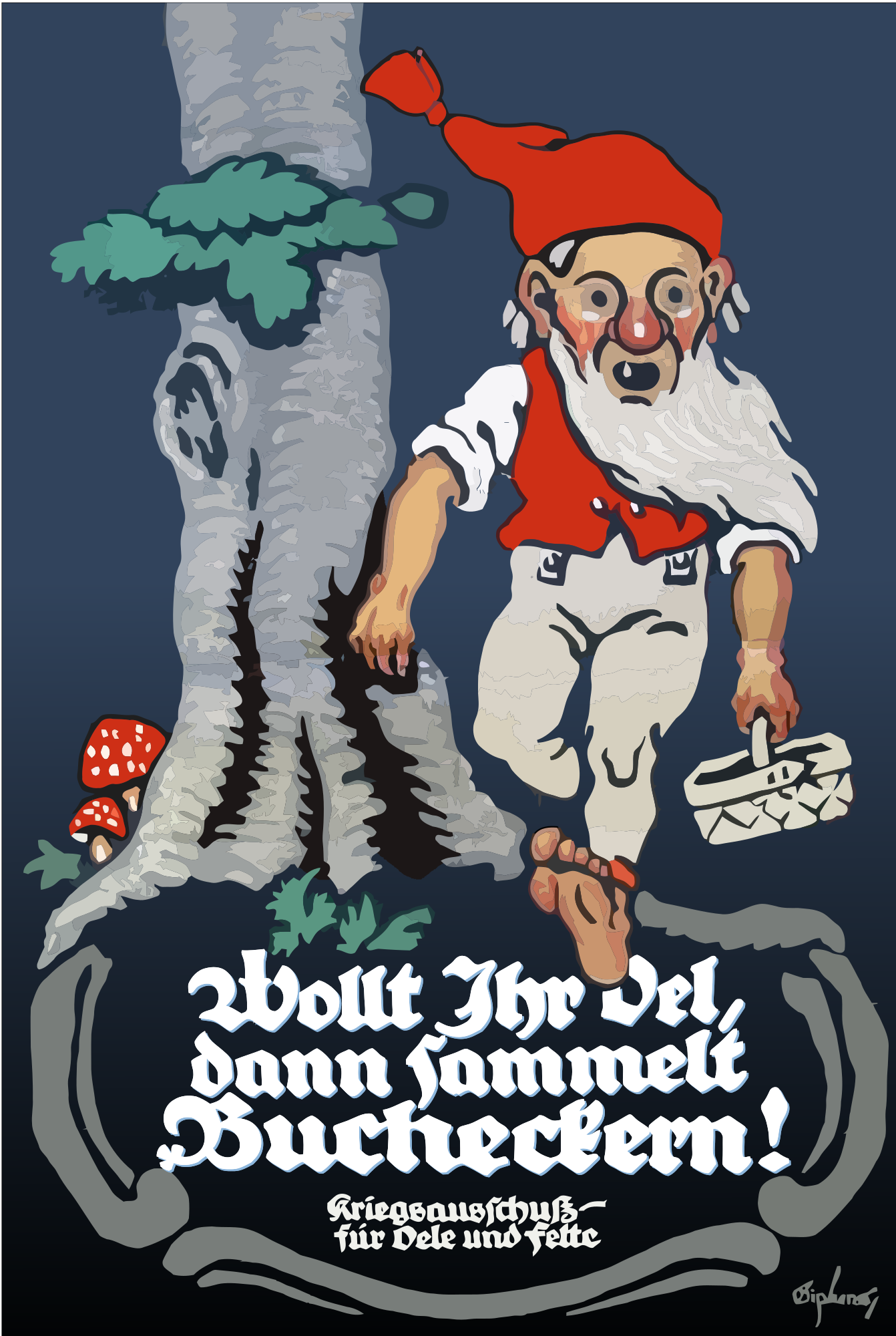 - 1915-18 Artist J. Gipkens Wollt Ihr Oel Comic characters dann Sammelt Bucheckern! War Committee for Oils and Fats WW I