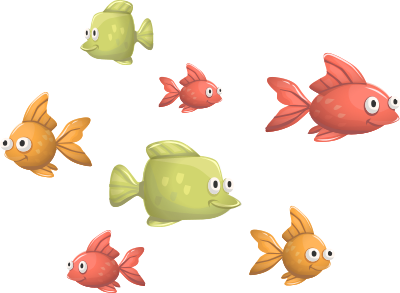 Some funny-looking fish from glitchthegame.com... in the original image the fish are part of a hanging mobile, but I think they work well on their own.