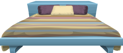 A bed with a stripy duvet and pillows, from glitchthegame.com