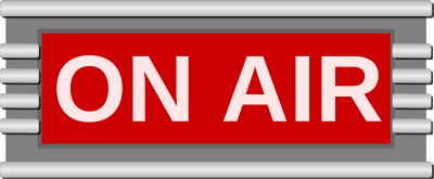 A sign of the kind that you would see at a recording booth in a radio station. Styled in a retro 1950's-esq way meant to match what I've seen of diners and jukeboxes from that period.