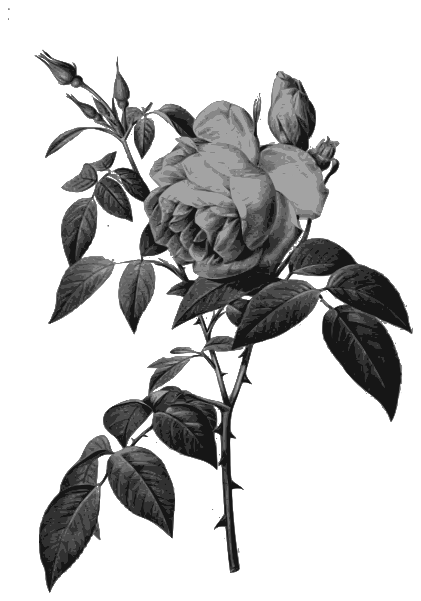 Redoute - Rosa indica fragrans - grayscale