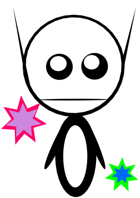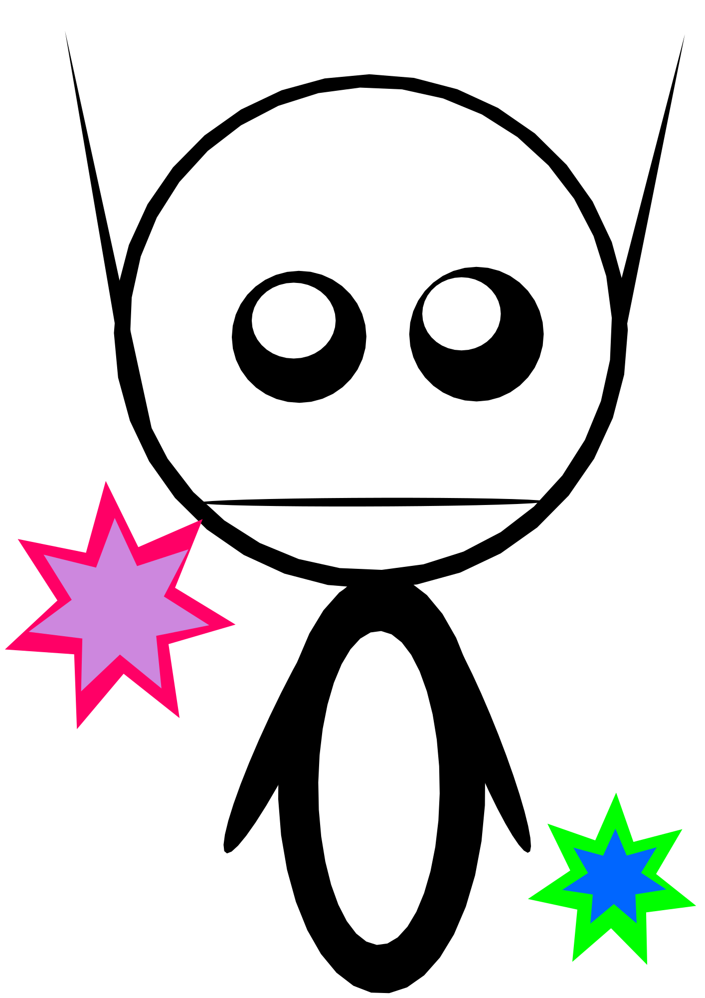 Martian outline in black and white with stars.