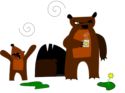Bears exiting the cave too early after a long winter's nap. That one ain't lookin' none too happy.