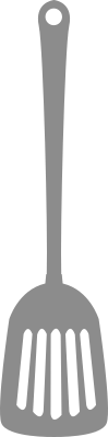 Plastic turner for pancakes and frying pan extracted from a Pixabay set of utensils.