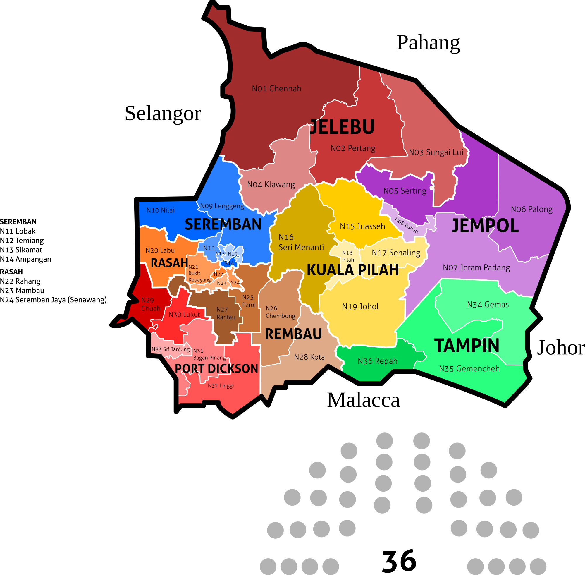 Map of the constituencies of the Negeri Sembilan State Legislative Assembly (Dewan Undangan Negeri Negeri Sembilan) for 2018 election