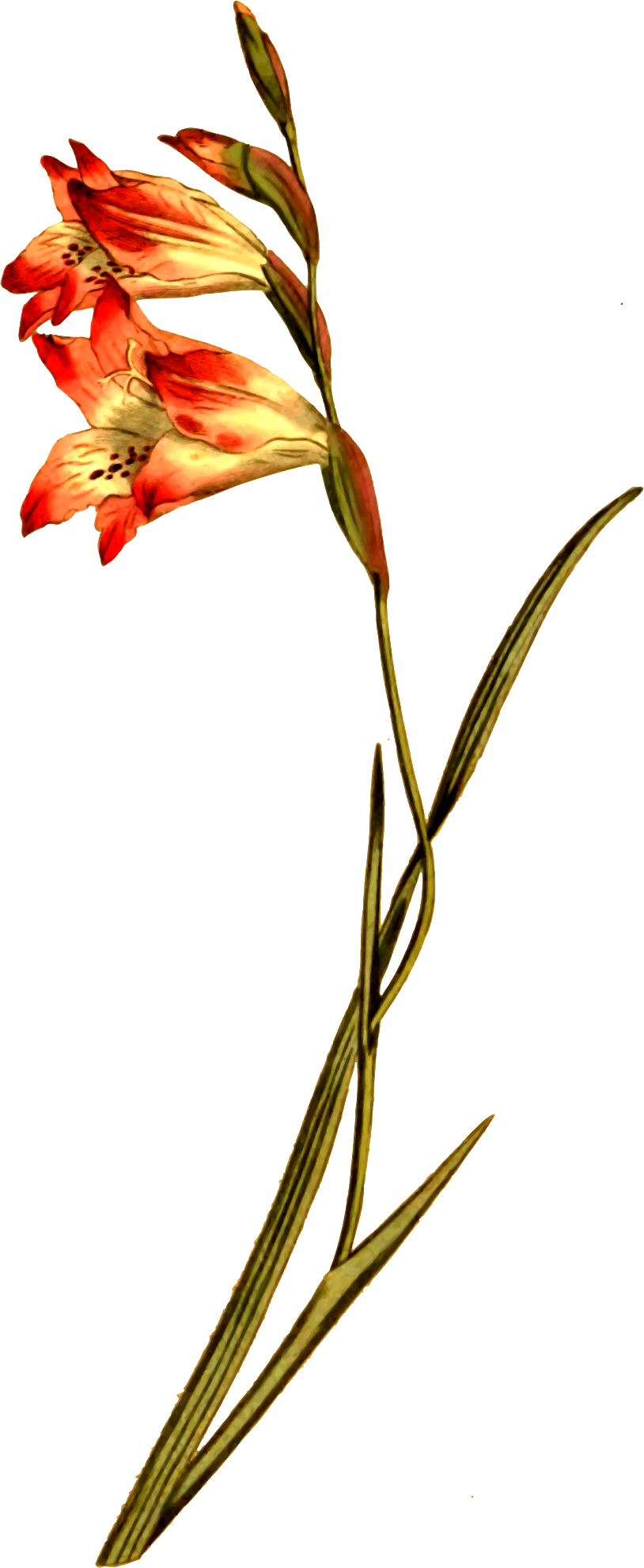 - antique botanical floral flower leaf leafy leaves magazine petal plant vintage two-flowered shaggy corn flag