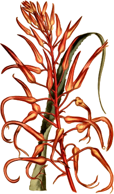 - antique botanical floral flower leaf leafy leaves magazine petal plant vintage scarlet pitcairnia