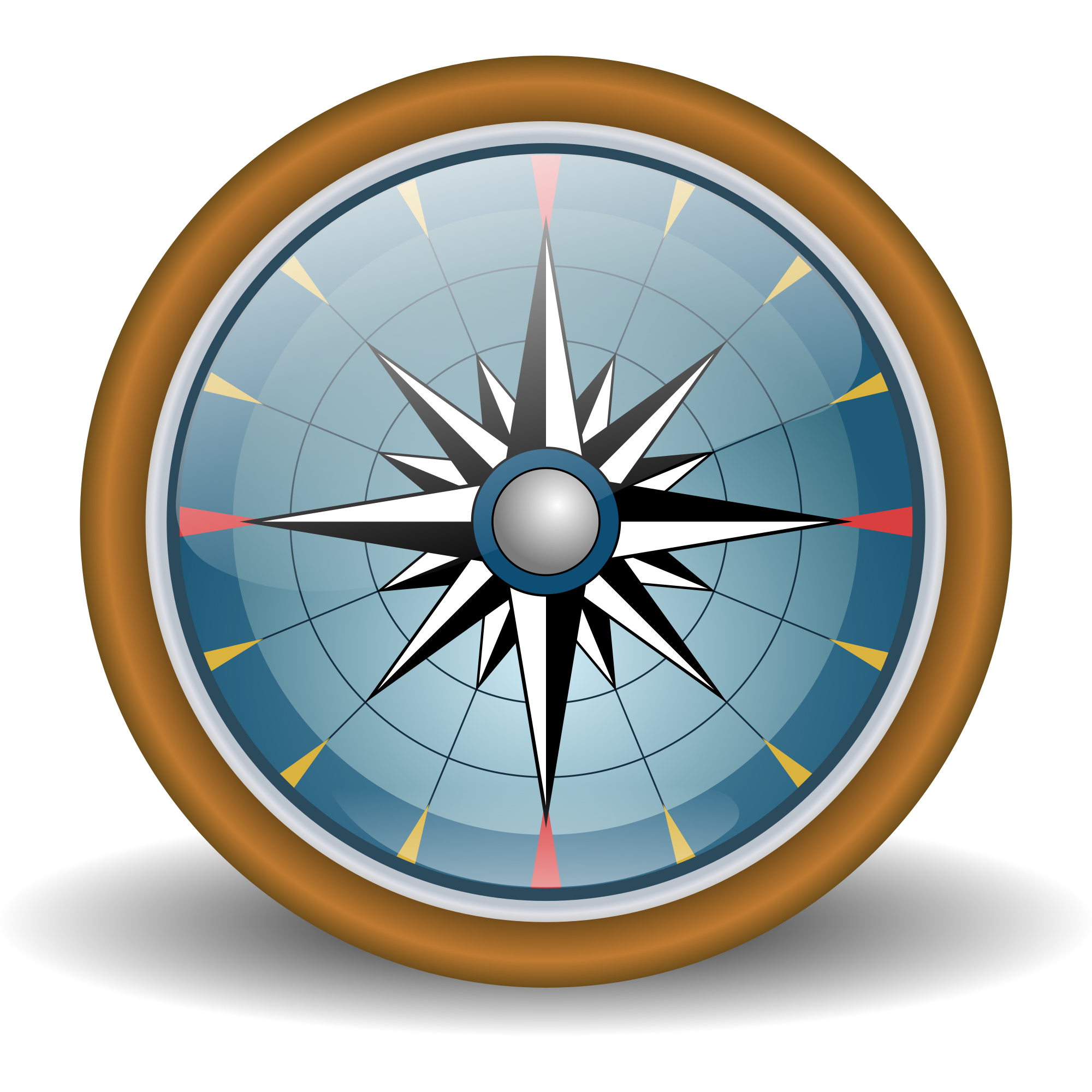 Compass/wind rose in blue with brass border