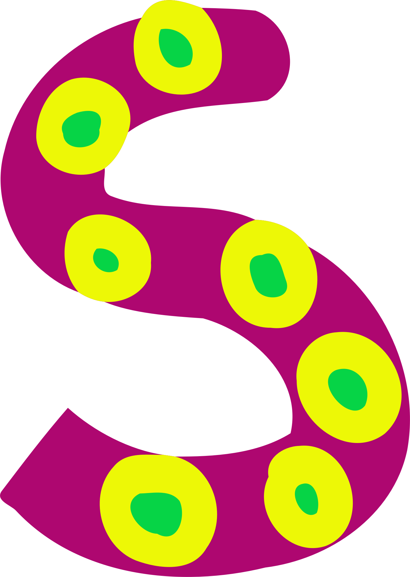 A colourful irregular letter S cut and vectorised from a JPG that was uploaded to Pixabay by Prawny