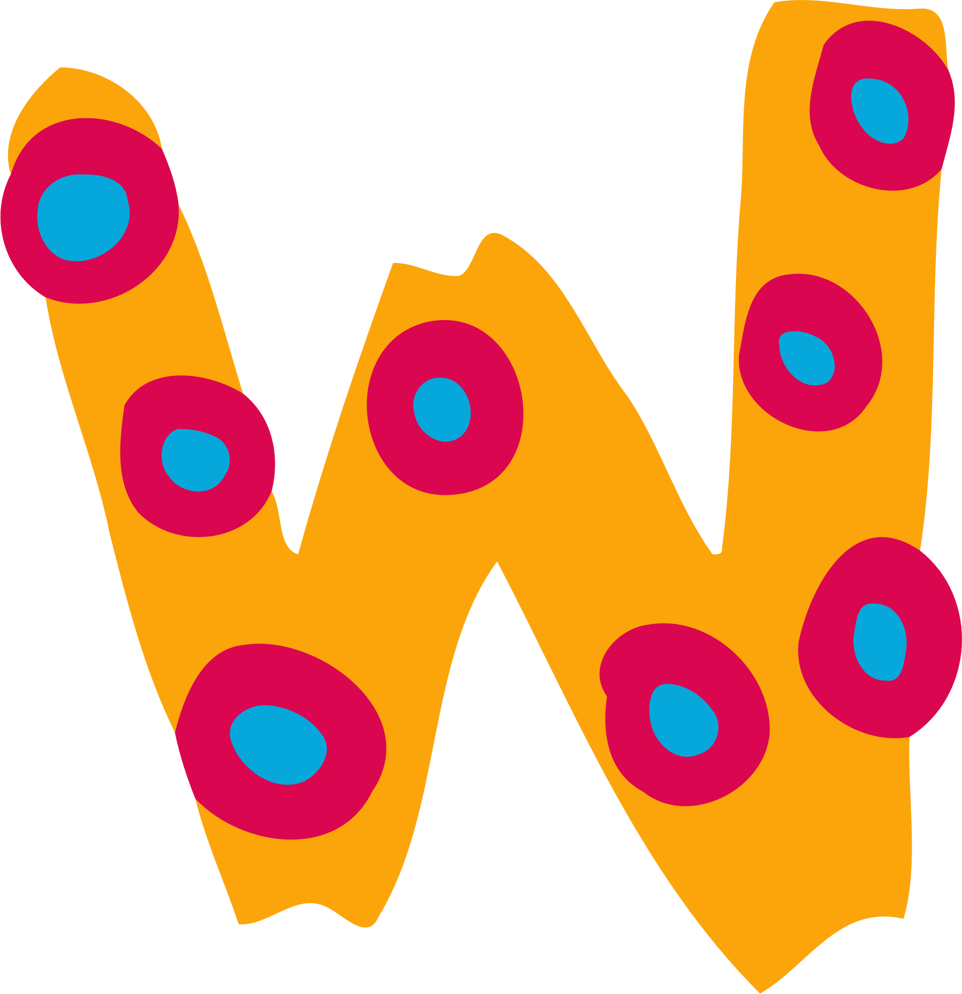 A colourful irregular letter W cut and vectorised from a JPG that was uploaded to Pixabay by Prawny