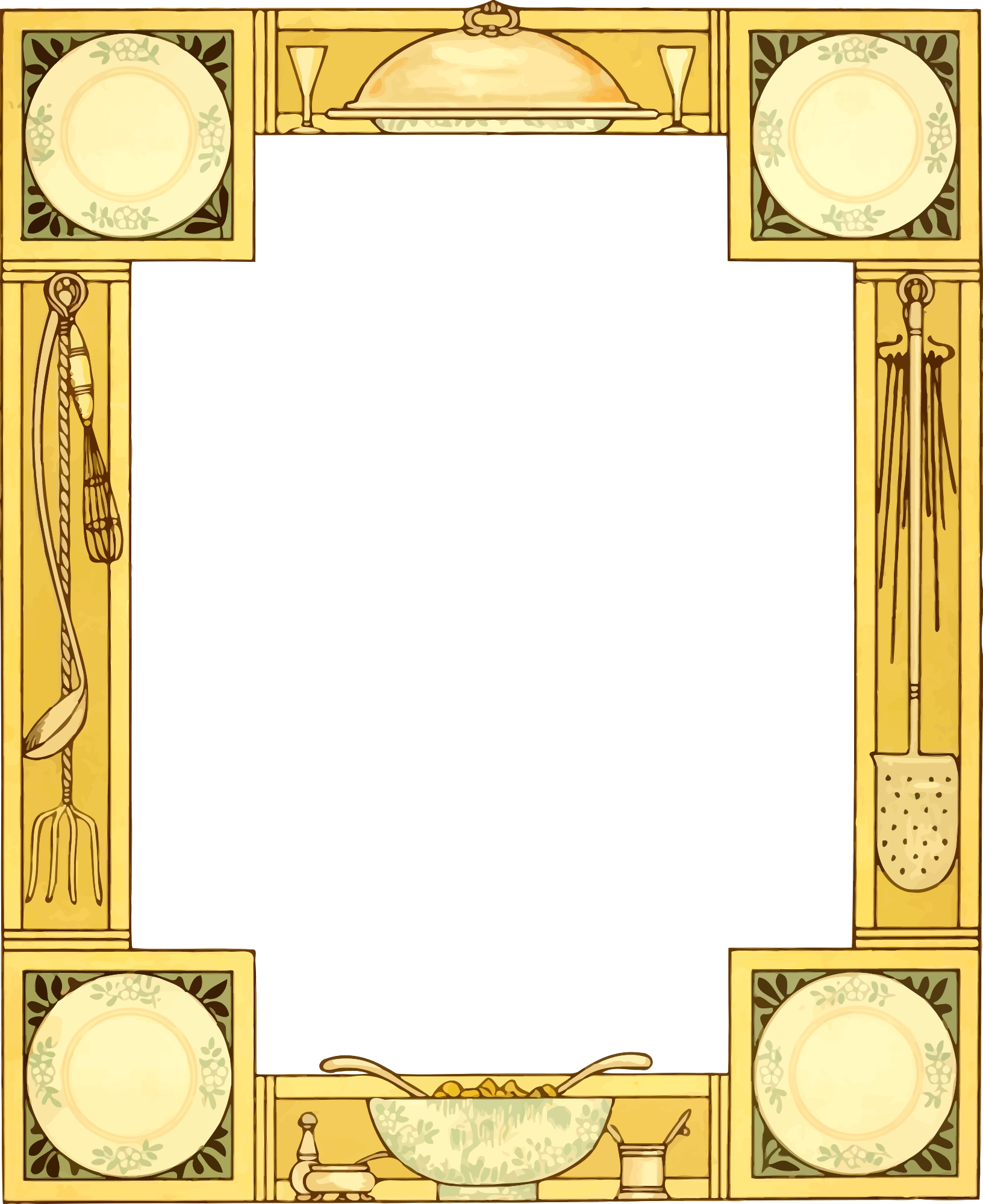 - border rectangle rectangular decoration decorative frame ornament ornamental kitchen plate bowl slice whisk food china crockery tools