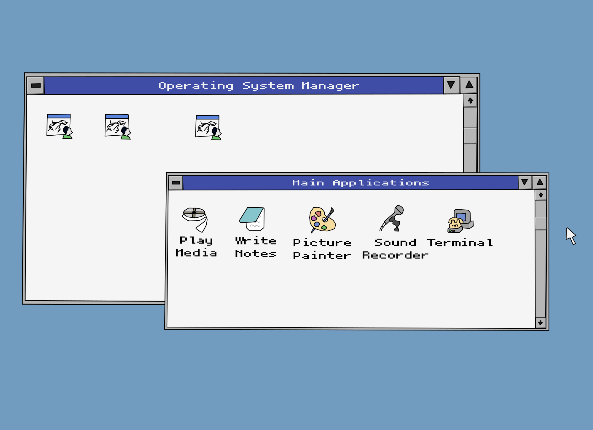 Although this isn't a perfect replication of the Microsoft Windows interface (as it shouldn't be, that would be copyright I think) this is meant to nonetheless somehow invoke some digital nostalgia for people who might have used it or other similar windowing systems of that time. Enjoy!