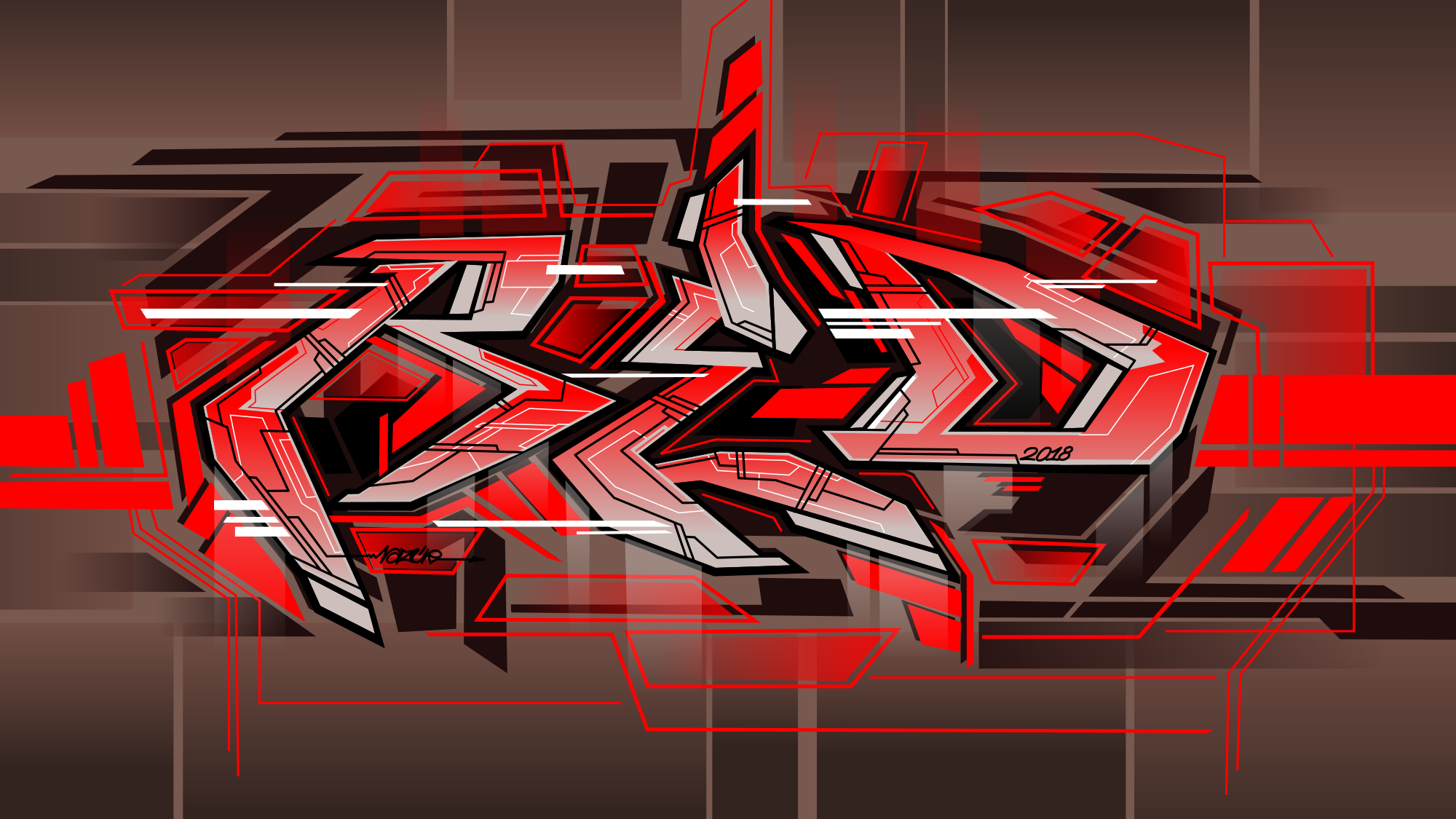 Graffiti lettering showing "red".