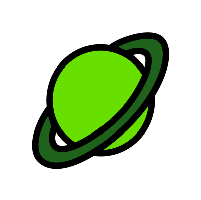 A cartoon planet similar to Saturn, with rings around it, coloured green.Adapted for the original mobile game Colibrium: www.Technaturally.games