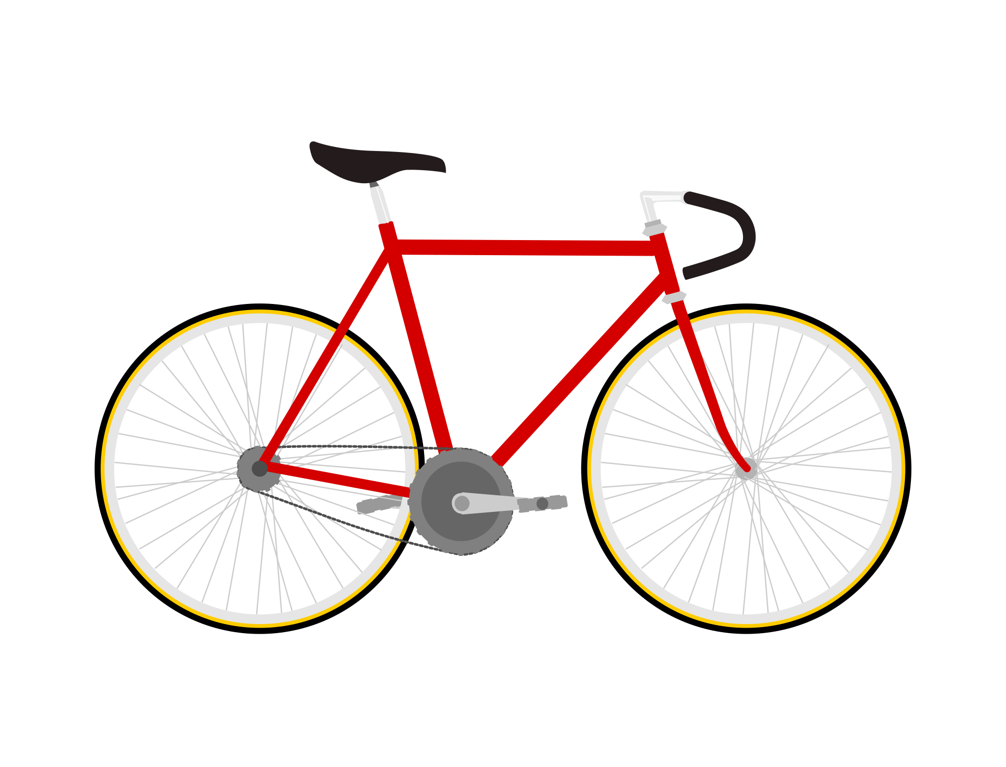 A fixed gear, low detail, flat design bike.